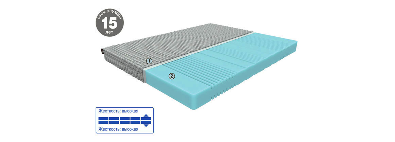 Это максимально упругий матрас для здоровой спины. Однослойная модель с контурным резом и пятью зонами поддержки. Жесткий, но комфортный матрас EХО обеспечивает упругую поддержку позвоночника во время сна за счет пены повышенной жесткости.